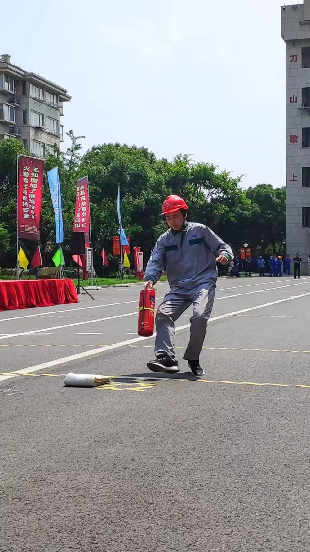 比賽開始,參賽隊員全身心投入,沉著冷靜、配合默契,展示了有效、規(guī)范、安全的應急處置和救援能力。選手現(xiàn)場發(fā)揮穩(wěn)定,靈活應變,最終女子油桶滅火獲得冠軍,穿戴空呼/防化服獲得亞軍,三人三帶出水擊靶獲得第四名。